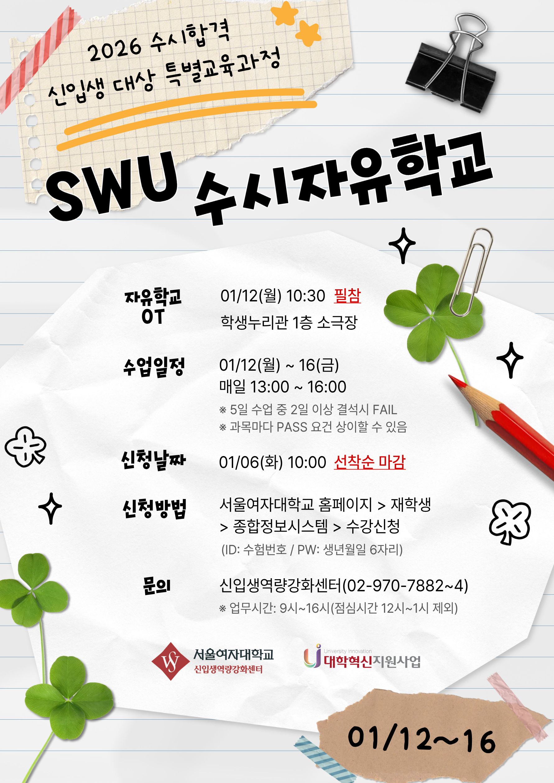 다. 문의처 : 신입생역량강화센터 ☎ 02) 970-7882~7884
